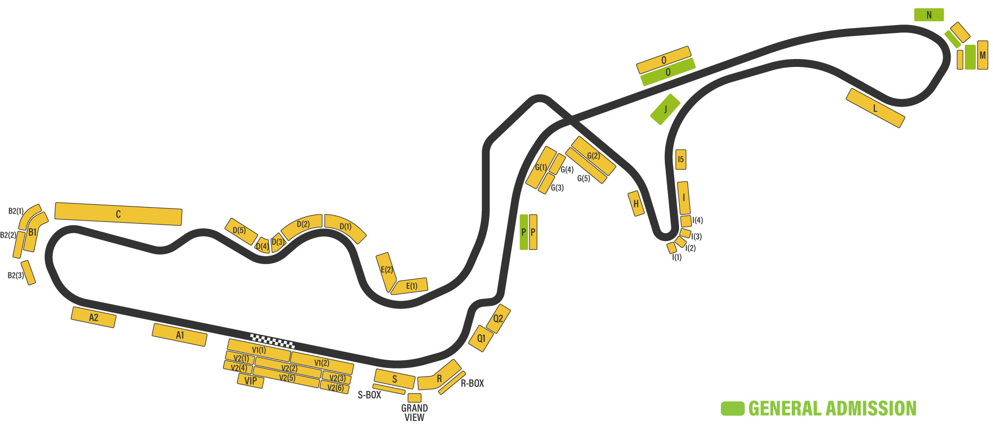 赛道还提供普通入场门票(GA)。GA 票允许观众进入没有指定座位的预留区域。请注意,这些票通常比标准票便宜。